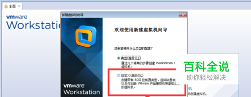 首先我们点开虚拟机,然后选择“创建新的虚拟机”,然后进入了新建虚拟机的向导,我们选择“自定义”。然后点击“下一步”。