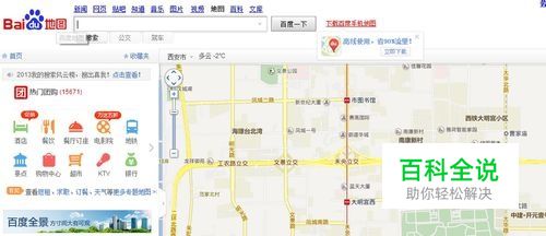 进入百度地图的首页后,可以看到搜索栏底下有三个功能:搜索、公交、驾车;左侧则是一些常见的餐饮等
