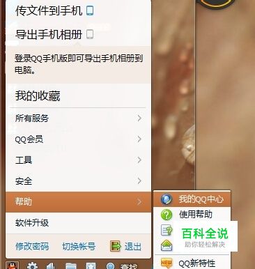 登陆QQ,点击左下角的菜单键>帮助>我的QQ中心。