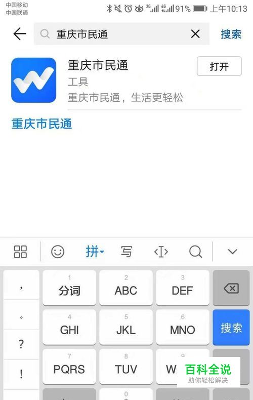 第二步: 打开手机“应用市场后”,在搜索栏输入“重庆市民通”,进行安装(由于小编已下载,所以你们看到的是打开)