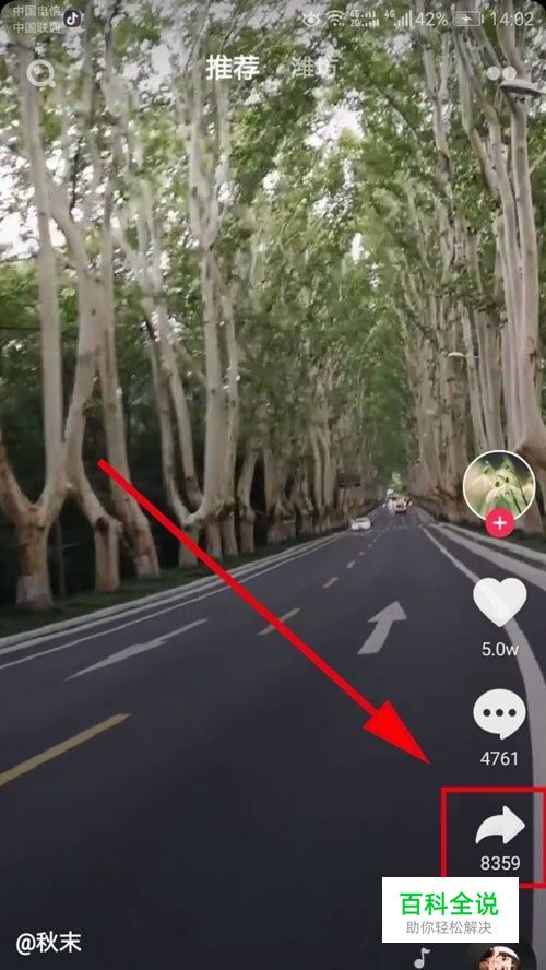 首先,打开抖音,找到自己喜欢的视频,点击后下角的分享按钮。