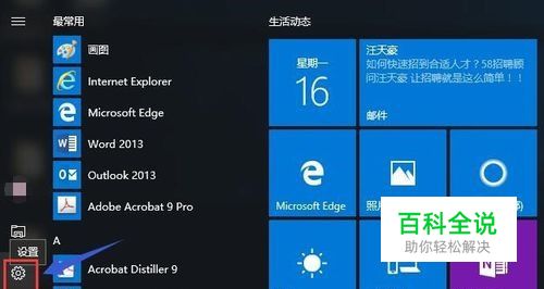 鼠标左键点击窗口键然后选择设置按钮,如下图所示