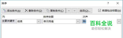 在弹出的对话框中主要关键字:成*绩 ;次序:降序 然后点确定