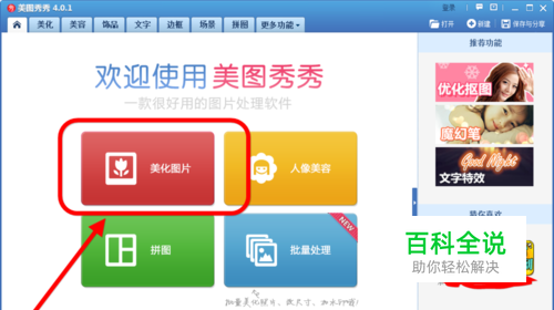 之后在【 美化】选项中,当然美图秀秀默认的操作页面就是【美化】,选择【抠图笔】,然后跳出【抠图笔】的操作页面。