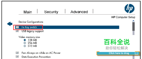 惠普商用笔记本 早期的惠普商用笔记本是不能对fn键进行设置的,2013年以后上市的笔记本例如840 G1、640 G1,添加了这一功能。 按下电源键后,迅速按F10进入BIOS,单击Advanced选项卡,再单击Device Configuration,您会看到Fn Key Switch选项, 如果勾选上FN Key switch选项,直接按f1-f12就可以实现对应的快捷键功能; 如果取消勾选FN Key switch选项,需要按fn+f1-f12来实现对应的快捷键功能;