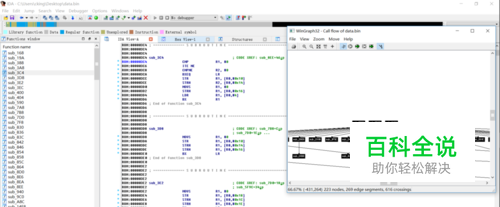 如果你好奇这个二进制文件做了哪些工作,你可能需要使用IDA之类的反汇编软件来分析它的逻辑了,如下图这是使用IDA反汇编刚刚得到二进制文件得到程序流程框图和反汇编代码。