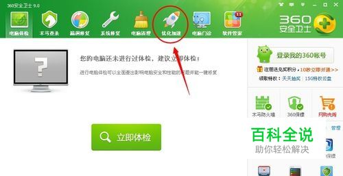 首先我们打开360安全卫士,点击上方的“优化加速”