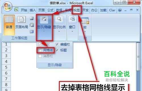 首先,新建一个工作表,选择【视图】-【显示/隐藏】- 把【网格线】前的勾选去掉。