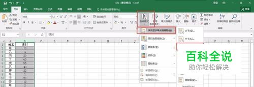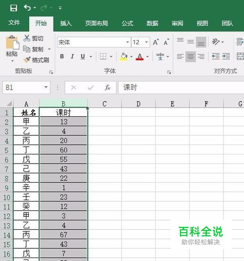 打开excel,并选择B列。要求对1-10,11-20,21-30等之间的数据根据设置的条件自动填充颜色。