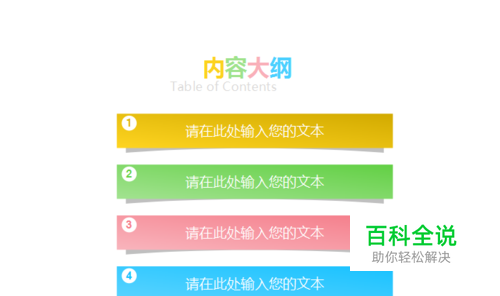 由于幻灯片库内的目录多为三个或四个标题内容,如果目录里超过四个标题内容,也可以使用复制内容增加新的标题,保持一致,如下图所示。