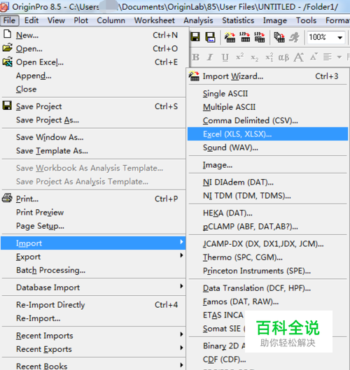 首先,把红外数据复制到excel表格中,并保存。点击origin8.5的file→Import→Excel(XLS,XLSL),添加你要作图的Excel文件,点击ok。添加数据成功后,选中其中一个个“y”上,右击如图Set As。选着x或者y。