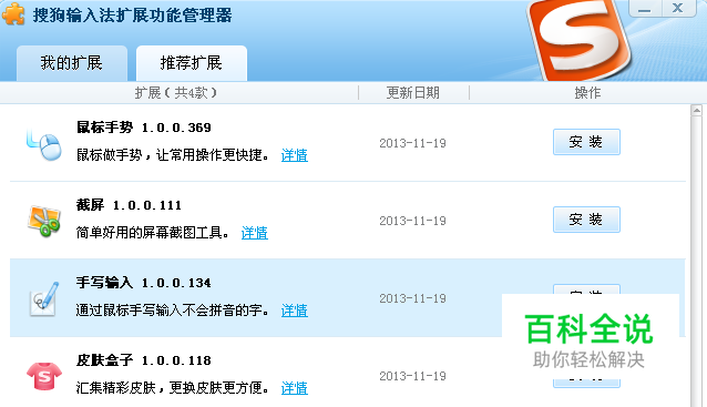 把输入法切换成搜狗拼音,按快捷键ctrl+shift+n,此时打开搜狗拼音的扩展管理器,找到截屏,点击后面的安装,
