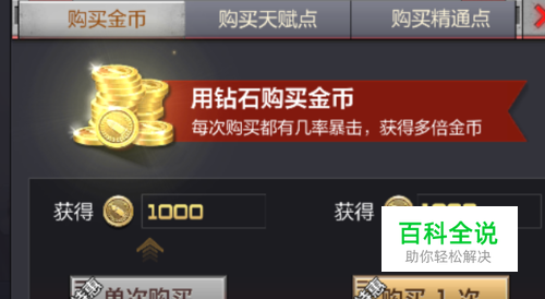 金币可以用钻石来购买,金币不够用可以用钻石换取,任性一把,反之金币则不能购买钻石。