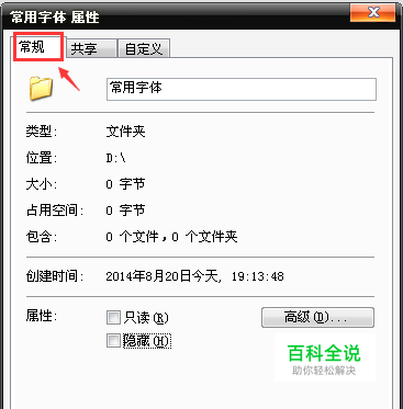 右击打开文件夹属性面板,在打开属性面板默认的就是我们需要的常规页面。