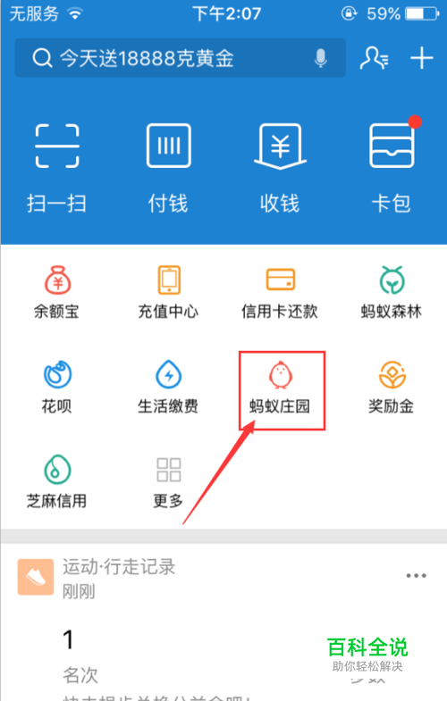 首先打开支付宝账号,然后找到蚂蚁庄园。