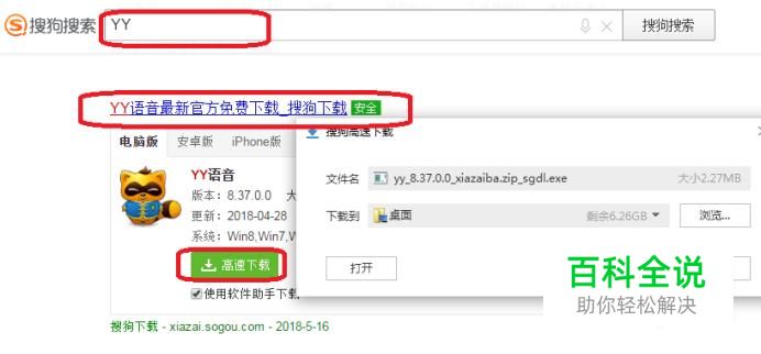 首先,要下载YY的电脑版,在浏览器搜索“YY”字样,找到后,点击下载,并按照提示安装。