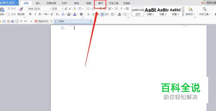 在桌面新建一个word空白文档后打开,在文档最上方的导航栏中找到“章节”选项!