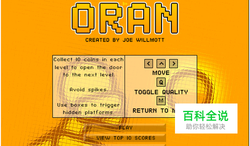 方向键←→左右移动小金人,↑跳跃,失败或成功后按空格键继续游戏