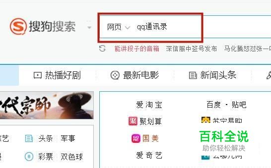 首先在搜狗浏览器中输入QQ通讯录并点击回车键,如下图所示。