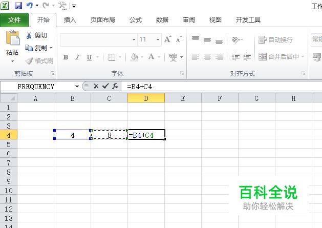然后我们在单元格后面输入=B4+C4,之后按回车键;