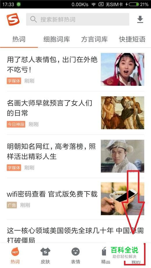 首先,打开手机上的“搜狗输入法”,然后点击首页右下角“我的”。