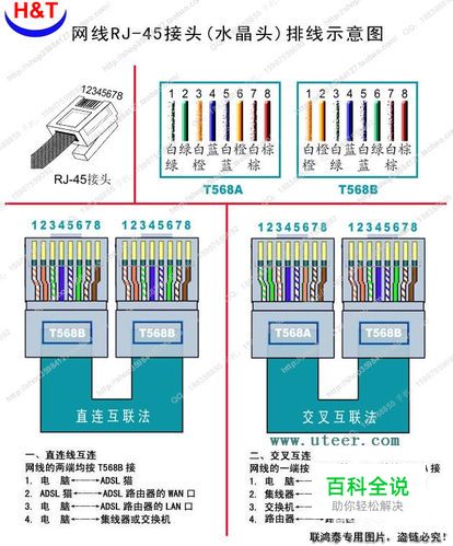 关于双绞线的色标和排列方法是有统一的国际标准严格规定的,现在常用的是TIA/EIA568B。在打线时应使用如下的顺序:(TIA/EIA568B) 1->橙白 2->橙 3->绿白 4->蓝 5->蓝白 6->绿 7->棕白 8->棕 第一步 :我们首先利用压线钳的剪线刀口剪裁出计划需要使用到的双绞线长度。 第二步 :我们需要把双绞线的灰色保护层剥掉,可以利用到压线钳的剪线刀口将线头剪齐,再将线头放入剥线专用的刀口,稍微用力握紧压线钳慢慢旋转,让刀口划开双绞线的保护胶皮。把一部分的保护胶皮去掉。在这个步骤中需要注意的是,压线钳挡位离剥线刀口长度通常恰好为水晶头长度,这样可以有效避免剥线过长或过短。若剥线过长看上去肯定不美观,另一方面因网线不能被水晶头卡住,容易松动;若剥线过短,则因有保护层塑料的存在,不能完全插到水晶头底部,造成水晶头插针不能与网线芯线完好接触,当然也会影响到了线路的质量。 第三步 :我们需要把每对都是相互缠绕在一起的线缆逐一解开。解开后则根据需要接线的规则把几组线缆依次地排列好并理顺,排列的时候应该注意尽量避免线路的缠绕和重叠。 第四步 :我们把线缆依次排列好并理顺压直之后,应该细心检查一遍,之后利压线钳的剪线刀口把线缆顶部裁剪整齐,需要注意的是裁剪的时候应该是水平方向插入,否则线缆长度不一会影响到线缆与水晶头的正常接触。若之前把保护层剥下过多的话,可以在这里将过长的细线剪短,保留的去掉外层保护层的部分约为15mm左右,这个长度正好能将各细导线插入到各自的线槽。如果该段留得过长,一来会由于线对不再互绞而增加串扰,二来会由于水晶头不能压住护套而可能导致电缆从水晶头中脱出,造成线路的接触不良甚至中断。 第五步 :我们需要做的就是把整理好的线缆插入水晶头内。需要注意的是要将水晶头有塑造料弹簧片的一面向下,有针脚的一方向上,使有针脚的一端指向远离自己的方向,有方型孔的一端对着自己。此时,最左边的是第1脚,最右边的是第8脚,其余依次顺序排列。插入的时候需要注意缓缓地用力把8条线缆同时沿RJ-45头内的8个线槽插入,一直插到线槽的顶端。 第六步 :当然就是压线了,确认无误之后就可以把水晶头插入压线钳的8P槽内压线了,把水晶头插入后,用力握紧线钳,若力气不够的话,可以使用双手一起压,这样一压的过程使得水晶头凸出在外面的针脚全部压入水晶并头内,受力之后听到轻微的“啪”一声即可。