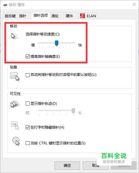 点击进入“指针选项”页面,可以设置鼠标指针的移动速度和运行轨迹。