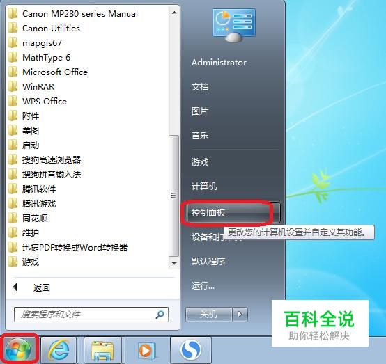 首先,点击开始菜单,选择“控制面板”,并点击进入。
