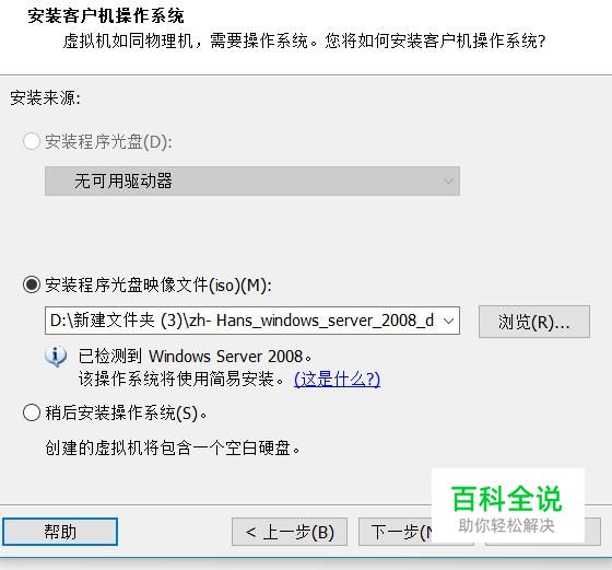 在安装客户机操作系统界面,选择需要安装的操作系统的ISO镜像文件,并添加进去,然后点击下一步
