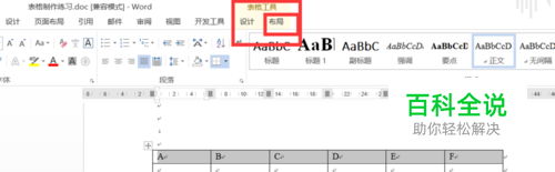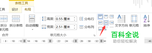 点击表格,会出现“表格工具”,选中表格中的文字,选中“布局“;