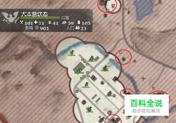 岗哨是这游戏的另一大神器,他的最主要作用是营造安全区。安全区内不会刷僵尸,即使区域内本来有僵尸,安全区扩展到这里后,僵尸也会慢慢自己离开。利用这个特点,我们可以非常安全地控制日常活动区域的僵尸数量。下图是我常用的安全区布置图。先留4个紧贴仓库周围,封住桥口和从后面河边过来的道路;再建4个沿着两条路线张开,罩住小镇的主要区域,特别注意的是记得要堵住西南角高地的下坡路,减少西南角的尸群数。这样一来,本来局限在小镇里的日常任务基本只会沿着小镇剩下的非安全区的缝隙处刷新(在我图上的红圈标示处),绝大多数都是很安全的区域,只有个别超出了安全区的范围。基本都是到地方找到人就结束了,非常方便。