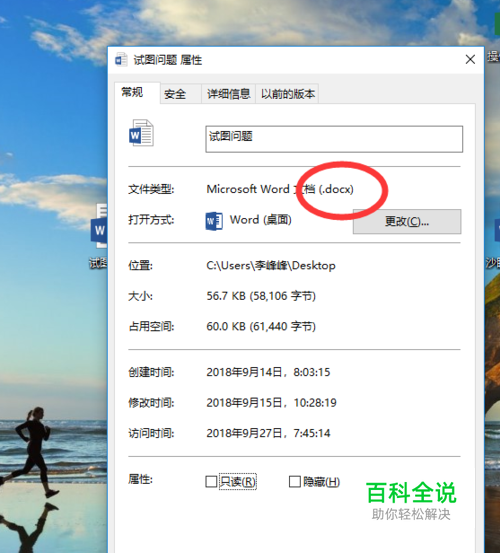 单击属性后,可以在常规中看到文档的格式为DOCX的格式