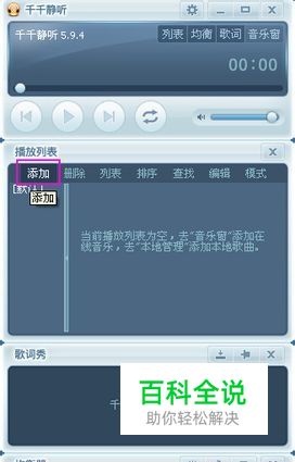 运行软件。打开千千静听软件,点击软件左边“添加”按钮,然后将要转换的cda格式文件添加到千千静听的软件上。如下图所示: