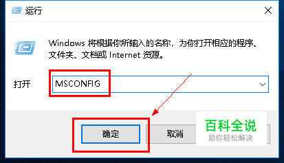 启动了运行对话框,输入MSCONFIG,点击确定按钮,如下图所示