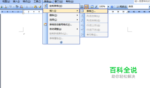 首先启动word2003,新建一文档,执行表格-插入-表格命令。