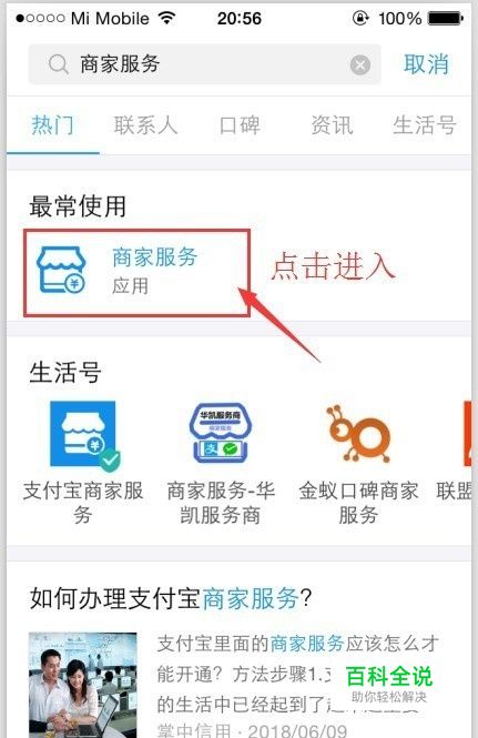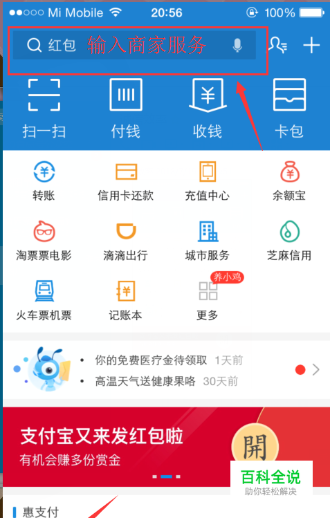 打开手机支付宝APPP,点击首页输入“商家服务”直接搜索