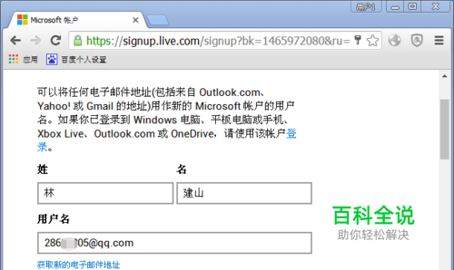 还有如果自己有电子邮箱的话,也可以点击下方修改为自己的邮箱进行注册创建,在注册Microsoft帐户表里依次填入姓、名、设置邮箱地址。