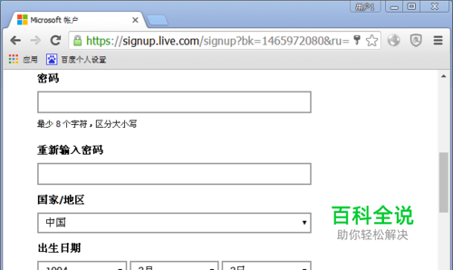 随后设置密码、(密码的要求:至少8个字符,大写小写字母和数字均可),选择国家地区、出生年月日、性别。