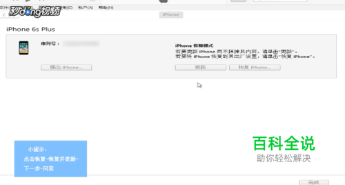 打开iTunes,点击恢复,点击恢复并更新,点击下一步,点击同意,刷机过程会自动完成。
