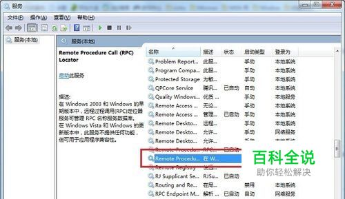 第二步进去服务列表之后,找到“Remote Procedure Call (RPC) Locator”服务,如下图所示: