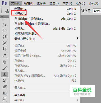 在该界面内找到文件菜单,在其子级菜单里找到打开选项,如图所示: