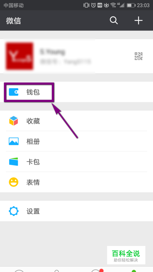 首先在图示页面列表中点击【钱包】选项,进入到微信钱包页面。