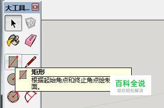 画墙或者柜子的时候,可以直接运用推/拉的命令,第一步,点击左上角大工具里边的矩形,点击空白处,就能看到拉出一个矩形线框。
