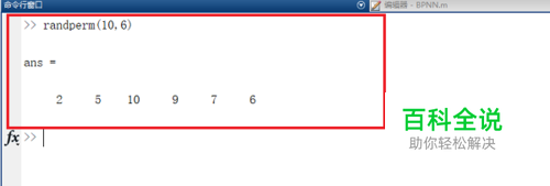 第三步输入randperm(10,6)会生成6个1-10的随机数,并且不会重复,需要注意的是randperm(K,N)格式,N需要小于等于K,如下图所示: