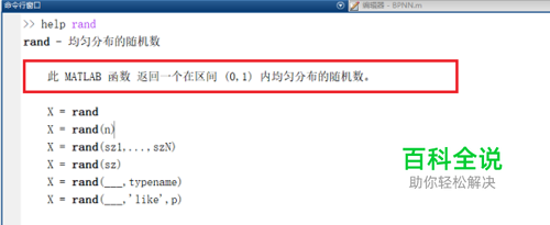 第一步打开matlab命令行窗口,输入help rand,按回车键,可以看到关于rand()函数的用法介绍,生成随机数的函数,如下图所示: