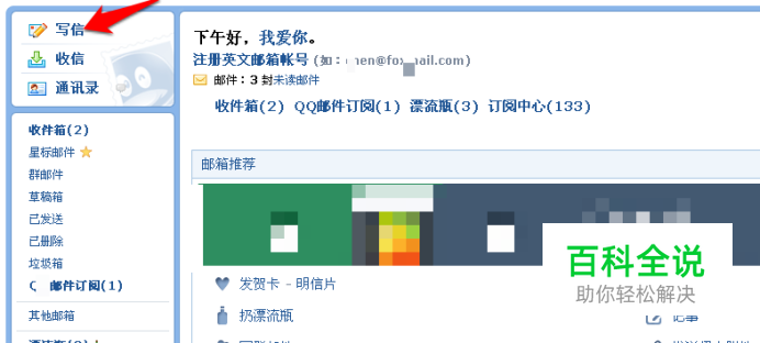 打开邮箱,点击“写信”: