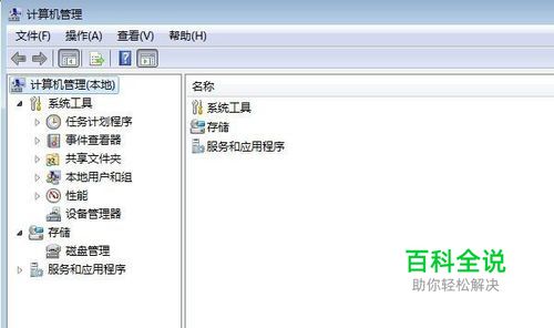 在弹出的计算机管理界面上会看到 计算机管理(本地) ,在计算机管理下面有三个三角符号。用鼠标选中系统工具那一项,然后点系统工具前面的三角符号。点完之后依次展开了设备管理器。