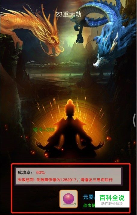 元婴期渡劫,每次的成功率是50%,如果想每次都能100%渡劫成功,那每次渡劫需要消耗10个元婴丹,耗量还是比较大的。
