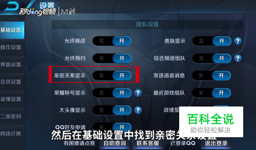 首先点击“设置”,然后在“基础设置”中找到“亲密关系显示”设置。