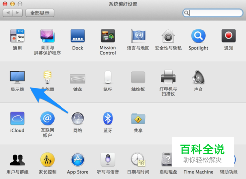 在系统偏好设置中,点击打开 “显示器”选项,如图所示